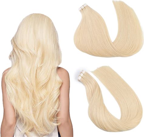 Tape In Hair Extensions Real Human Hair Extension,Bleach Blonde Human Hair 24 Inch 20Pcs 50G,Thick Ends Straight Seamless, Invisible Tape In Hair