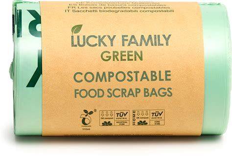Lucky Family Green Compost Bags For Kitchen Countertop Bin - 100% Compostable Trash Bags For Food Waste, Organic Biodegradable Trash Bags (1.3-1.6