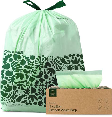 Cleanomic Compostable Trash Bags With Drawstring (13 Gallon, 25 Units, Tall), BPI Certified For Kitchen Compost