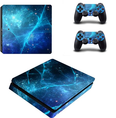 Extremerate Full Set Faceplate Skin Decals Stickers And 2 Led Lightbar For Ps4 Slim/For Ps4 Slim Console & 2 Controller Decal Covers - Blue Galaxy