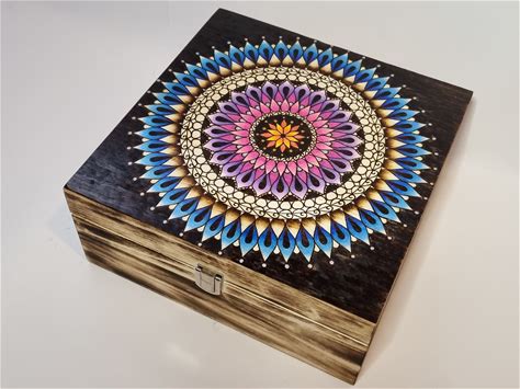 Mandala Wooden Keepsake Box, Hippie Boho Gift, Stash Box, Trippy Geometric Artwork, Wooden Box, Alternative Gift For Her, For Him,Pyrography
