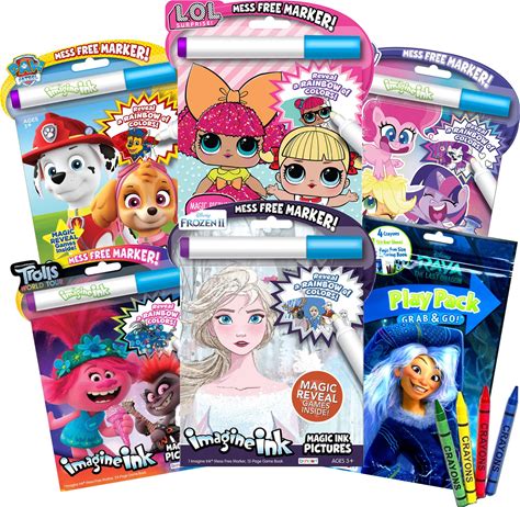 Assorted Set Of Imagine Ink Magic Coloring Books For Girls Mess Free Invisible With Play Pack Sticker Bonus Play Fun Favors Stickers Bulk 6 PACK