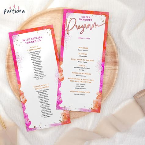 Pink Orange Program Card Printable, Birthday Dinner Party Table Programs, Hot Pink Tropical Banquet Events, Editable Digital Download P200