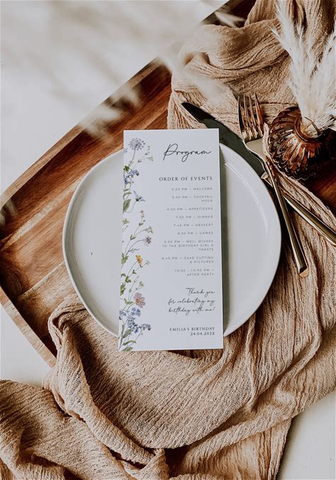 Order Of Events Party Adult Birthday Program Template, Colorful Wildflowers Birthday Program, Rustic Minimalistm B-Day Event Programs - C26