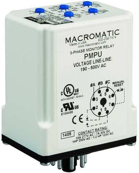 MACROMATIC 3 Phase Monitor Relay, SPDT, 500VAC, 8 Pin, PMPU