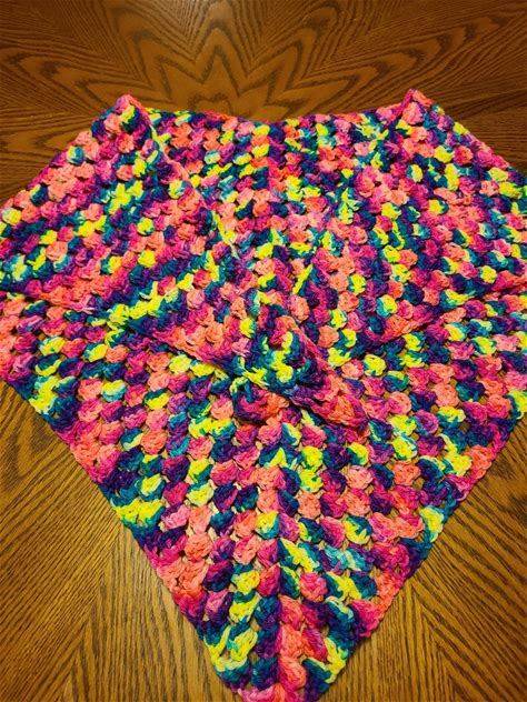 Triangular Shawl Scarf, Easy To Wear, Crochet, Contrasting Vivid Colors (Brown, Green, Orange, Blue), Unique