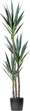 Handmade 4 ft. Artificial Yucca Tree In Home Basics Plastic Pot Made With Real Wood And Moss Accents