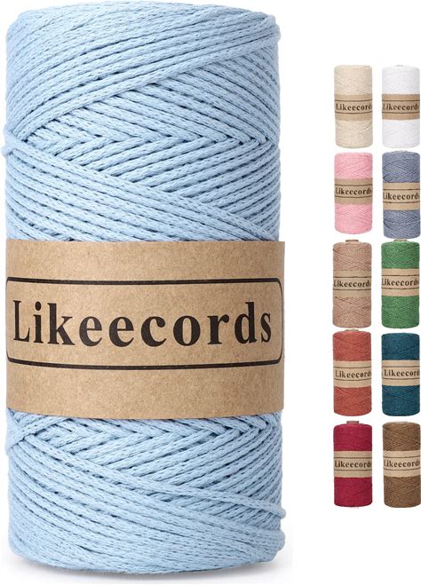 Likeecords 100% Cotton Crochet Bag Cord 2mm 170m Macrame Cord 2mm Crochet Thread Macrame Rope Gift For Knitter (Light Blue)