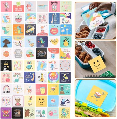 60Pcs Lunchbox Notes Kids Joke Cards Cartoon Lunch Box Cards For Parties Schools