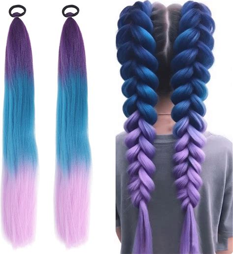Mimalexin 2PCS Long Braid Ponytail Extensions With Hair Elastic Tie, 26 Inch Gradient Purple Pink Blend Hair Extensions, Straight Sleek Wrap Around