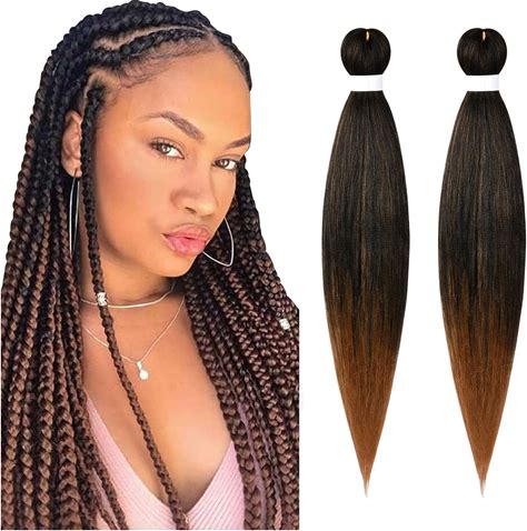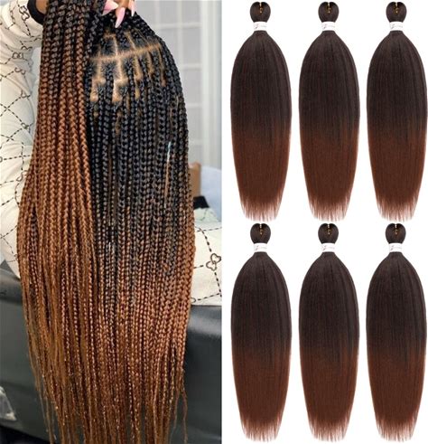 Ombre Braiding Hair,24 Inch Ombre Natural Black To Brown 6 Packs Hair Extensions Professional Synthetic Braid Hair Crochet Braids, Soft Yaki Texture,