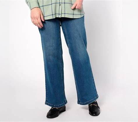 Denim & Co. Original Waist Stretch Regular Sidepocket Pant-Core, Size Medium, Denim