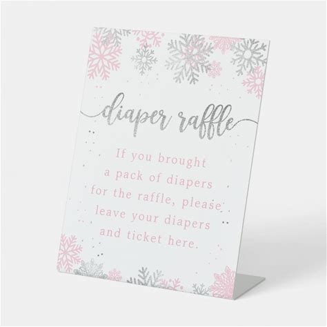 Snowflakes Pink Silver Diaper Raffle Baby Shower Pedestal Sign