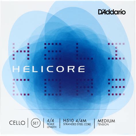 Daddario H510 Helicore Cello String Set, 4/4 Scale Medium Tension (1 Set)- Stranded Steel Core For Optimum Playability And Clear, Warm Tone -