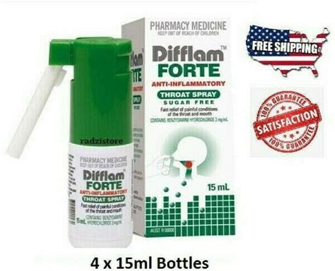4 X 15Ml Difflam Forte Anti-Inflammatory Throat Spray For Fast Pain