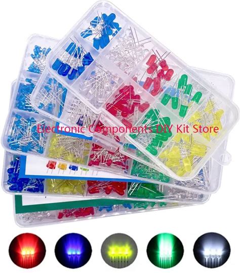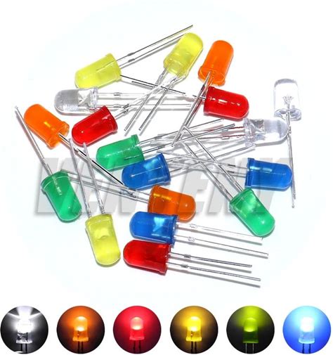 100Pcs 5mm LED Diode 5 mm Assorted Kit White Green Red Blue Yellow Orange Pink Purple Warm White DIY