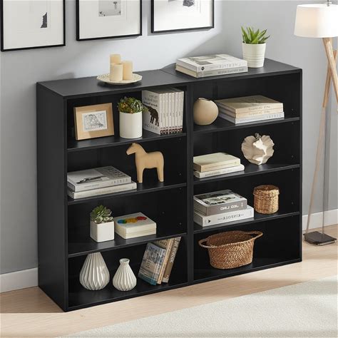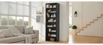 Shelfcraft Modern Adjustable 8-Layer Multifunctional Bookcase With Durable MDF And Detachable Design Black