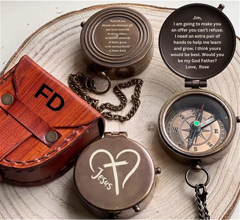 Personalized Compass, Christian Gift For Men, Custom Made Compass, Baptism Gift, Personalized Gift, Godfather Gift, Godparent Compass