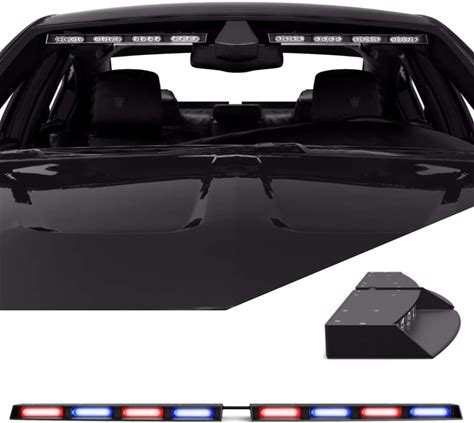 Speedtech Lights Raptor-X TIR Upper Windshield Interior Split LED Strobe Visor Light Bar Emergency Lights For Vehicles And Police With Cigarette Lighter Plug Controller - Red/Blue Alternating