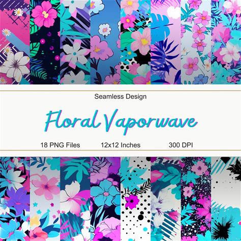 18 Seamless Floral Vaporwave Patterns | Floral Vaporwave | Digital Download | 18 Pattern Bundle | Printable Pattern