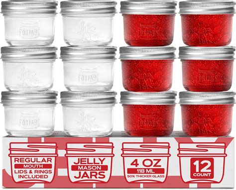 FORJARS® Premium Mason Jars With Lids - 4Oz | Regular Mouth Canning Jars | 12-Pack Glass Jars For Jam, Jelly, Pickling, Food Storage, Freezer Safe,