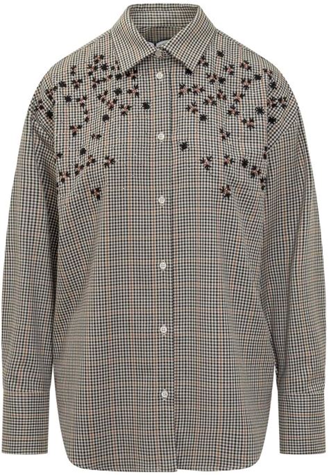 MSGM Long Sleeved Checked Embellished Shirt - IT42