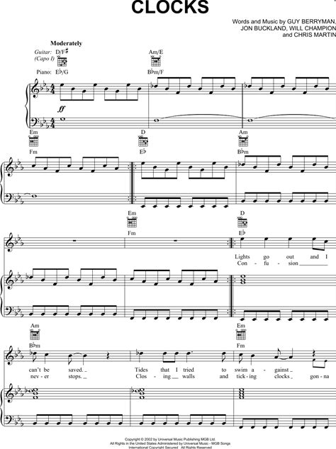 Clocks Sheet Music Download By Coldplay For Piano & Vocal