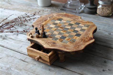 Custom Large Handmade Chess Set, Christmas Gift For Husband, Wooden Chess Board With Storage, Decorative Chess Set Housewarming Gift