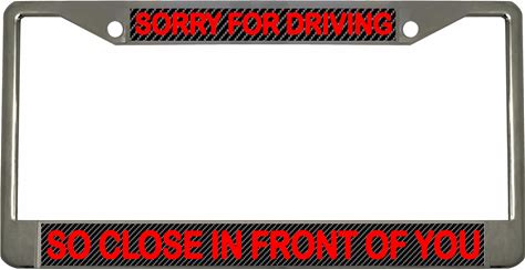 Metal License Plate Frame Sorry For Driving So Close Humor Funny Metal Tag Holder Car Accessories Black 2 Holes 1 Frame