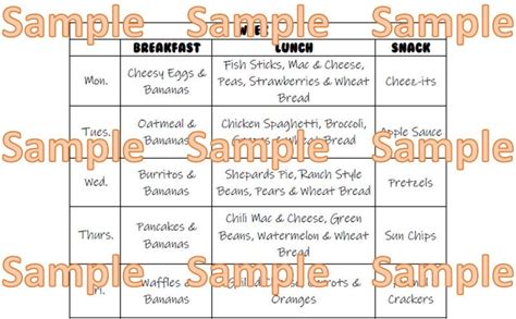 Food Program - Printable Weekly