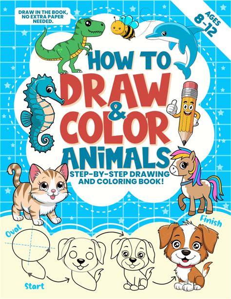 How To Draw And Color Animals For Kids Ages 8-12: Step-By-Step Drawing And Coloring Book Using Basic Shapes I From Cute Pets And Farm Friends To ...