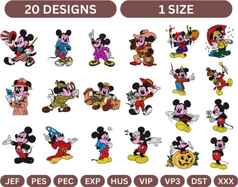 Mickey Mouse Embroidery Mega Pack 20 Designs | PES Files Only | Instant Download Digital Bundle For Brother Embroidery Machines
