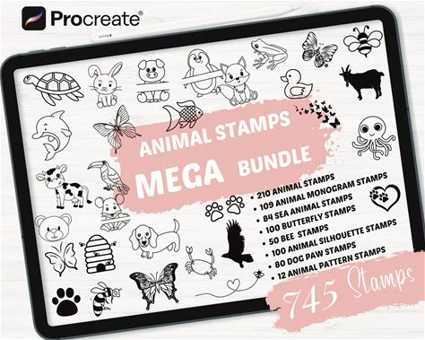 Procreate Animal Mega Bundle Stamps | 700 Animals Procreate Brushes | Butterfly Procreate Stamps | Dog Procreate | Bee Procreate Stamps 1