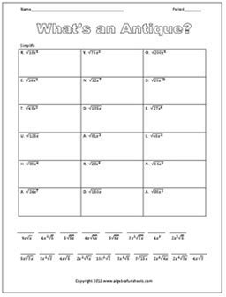 Top suggestions for Simplifying Radicals Practice Worksheet |