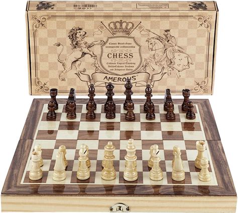 Amerous Chess Set, 12"X12" Folding Wooden Standard Travel International Chess Board Game Set With Magnetic Crafted Pieces For 2 Players