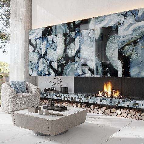 Splendor 24X48 Icy Blue Porcelain Large Format Geode Agate Wall And Floor Tile (15.5 Sq Ft/Case) - 2 Pack