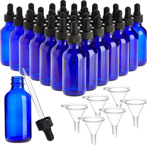 Juvale Mini Blue Glass Dropper Bottles - Travel Essentials Sample Containers For Essential Oil Bottle & Glass Vials - Includes Funnels & Dropper Lids