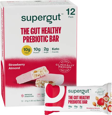 Supergut GLP-1 Boosting Prebiotic Bars, Strawberry Almond - Gut Healthy Protein Snacks & Breakfast Bars - Keto-Friendly Meal Replacement Energy Bars