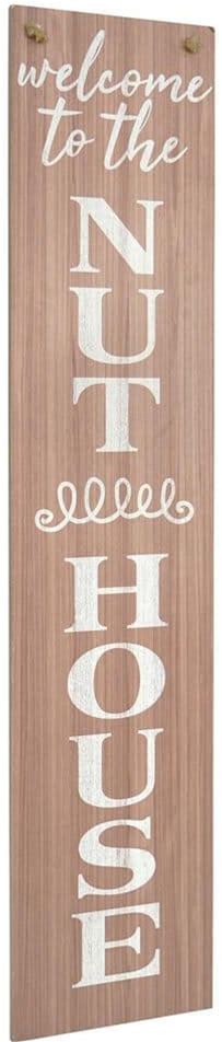 Unframed Reversible Wall Sign, Welcome To The Nut House / Our Happy Place, Entryway & Home Decor, 47.25 in. X 10 in.