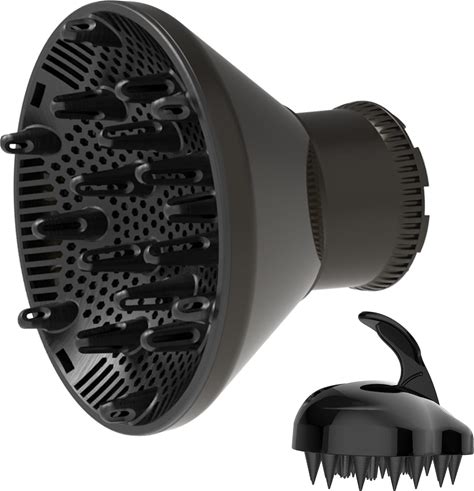 Universal Hair Diffuser Adaptable Hair Dryer Attachment For Blow Dryer Nozzles From 1.7 To 2.2 Inch Diameter (Black With Shampoo Brush)