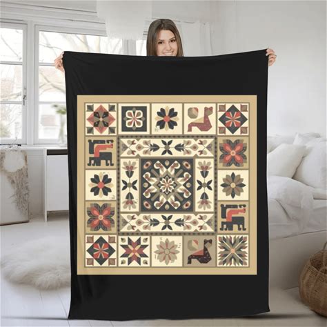Folk Art Quilt Pattern - Vintage Floral & Animal Fleece Blankets