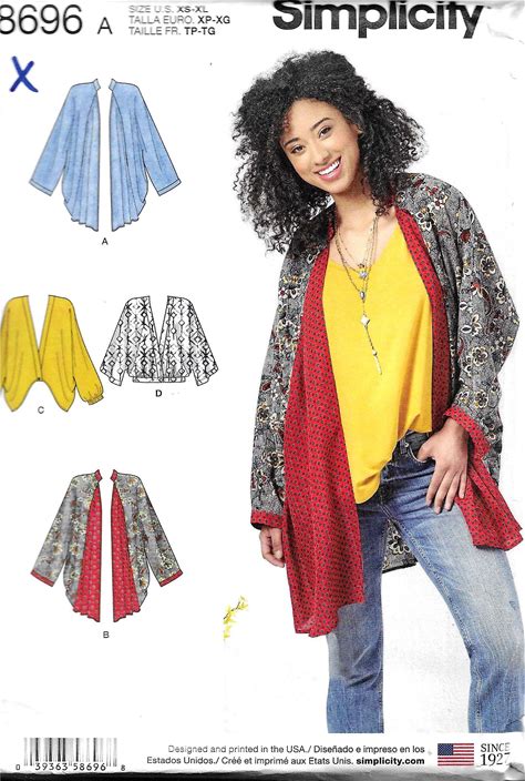 Simplicity 8696 Kimono Top Sewing Pattern UNCUT Size XS, S, M, L, XL