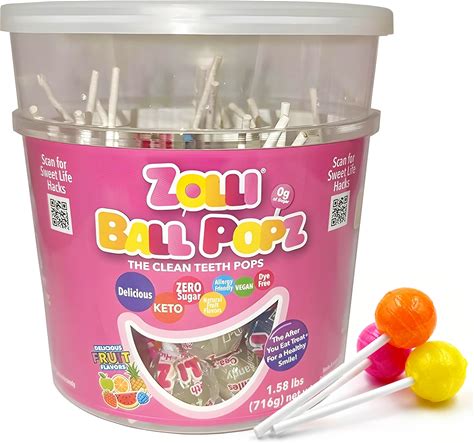 Zolli Ball Popz Clean Teeth Sugar Free Candy - Dye-Free, Keto & Diabetic-Friendly, Dentist-Approved Treats For Kids (Natural Fruit Flavors, 60 Count)