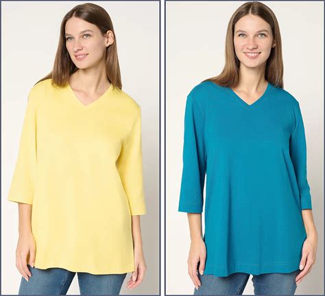 Denim & Co. Essentials Regular 2-Pack Mock Neck Tunics, Size Medium, Blue Bayou/Nat