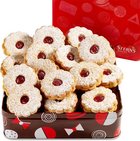 Linzer Cookies-Holiday Cookie Tin, 18 Count | Gourmet Cookies Gift Box For Colleagues, Friends, Kosher, Nut-Free, Dairy-Free, Stern's Bakery