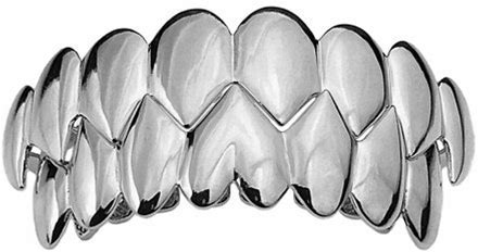 Shark Grillz 8 Top & Eight Bottom Teeth Set Silver Tone Vampire Fangs Grills