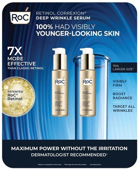 Roc Retinol Correxion Anti-Aging Wrinkle Night Serum, Retinol Serum For Face, Daily Treatment For Fine Lines, Post Acne Scars, 30 Capsules, Unscented,